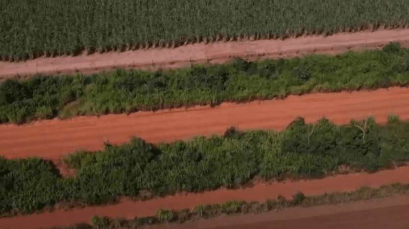 Terra tratada com calcário (300Ton) e gesso (80Ton) conforme exame feito na terra em fevereiro/2022 e 250Ton Calcário 2023;