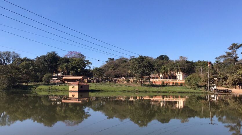 amplo pasto em frente ao lago, para criação de gado ou cavalos. Tendo galpão para os