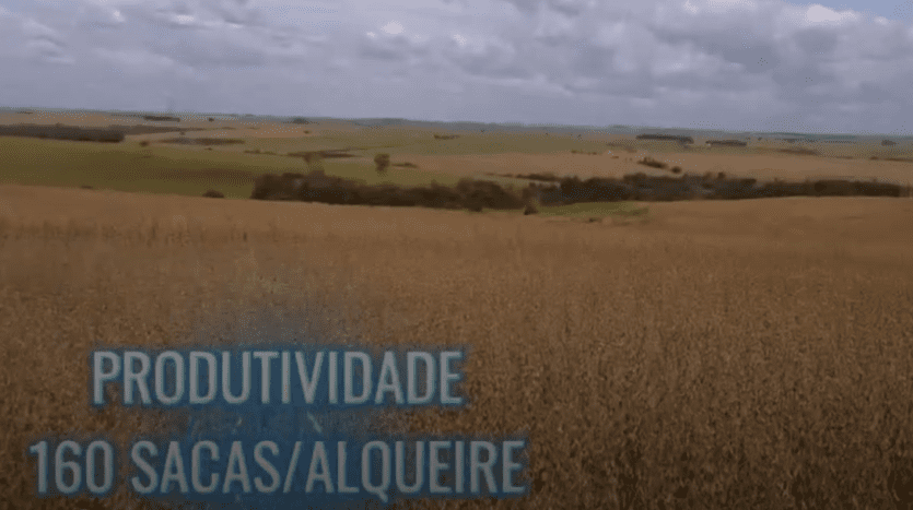123,42 ha em soja e milho safrinha há 15 anos, com produtividade de 160 sacas/alqueire (66,11 sacas/hectare);
