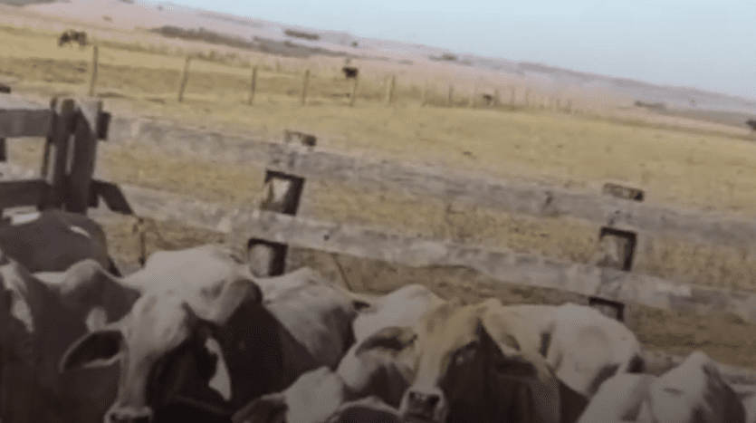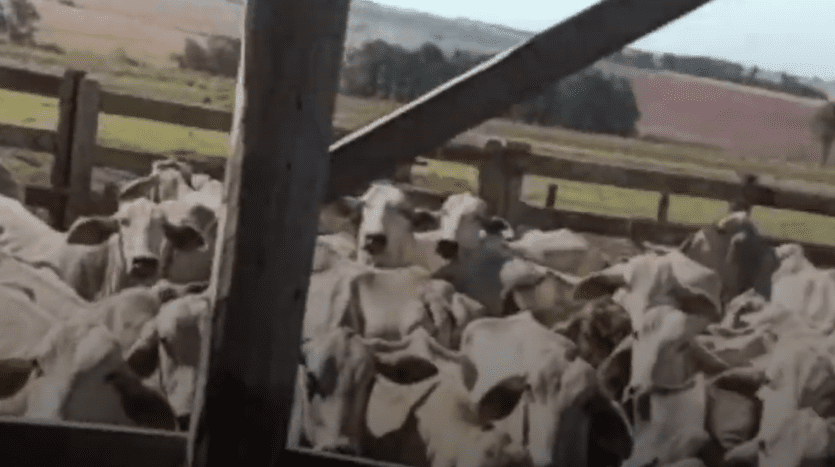 Curral com tronco de contenção e balança, formado em réguas de Ipê.