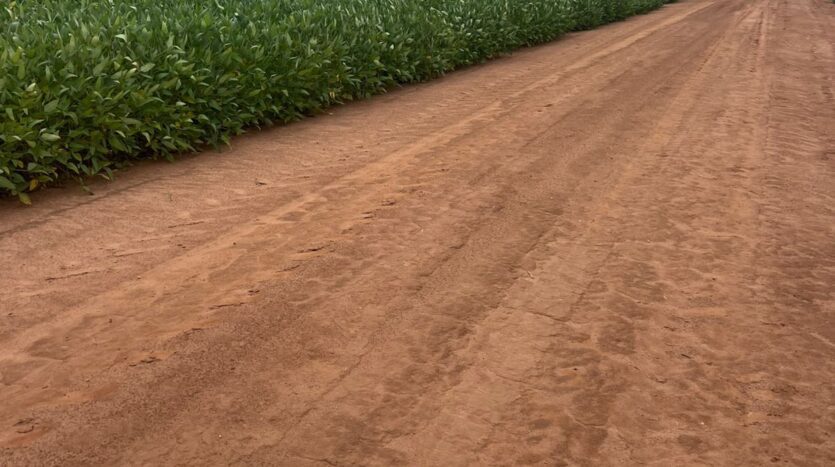 Fazenda plana, às margens do asfalto da BR 158, com área total de 874 ha e plantio de soja e milho safrinha em 692 ha. Logística e topografia excelentes.