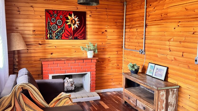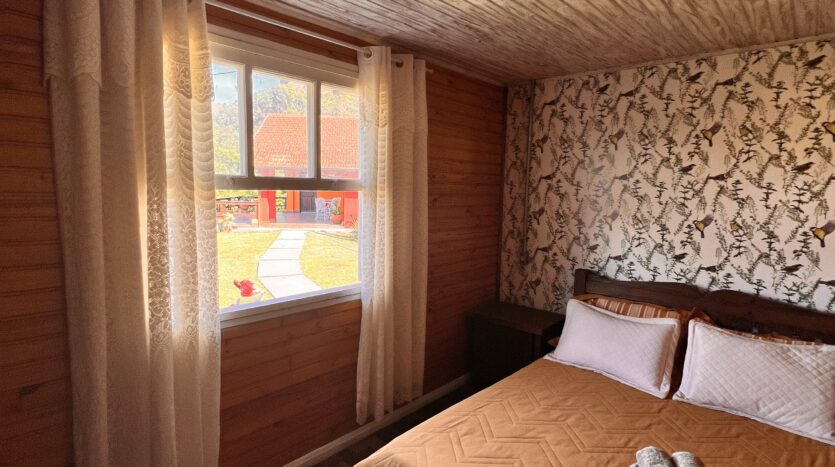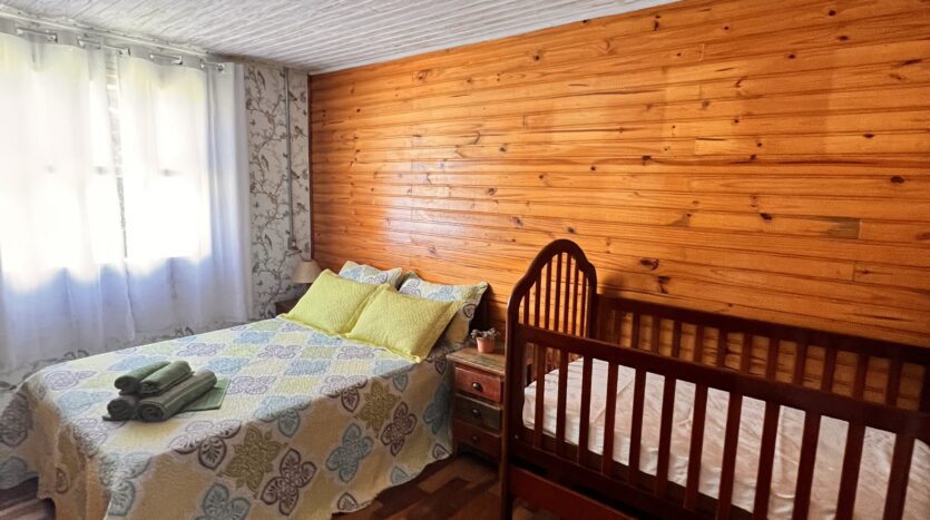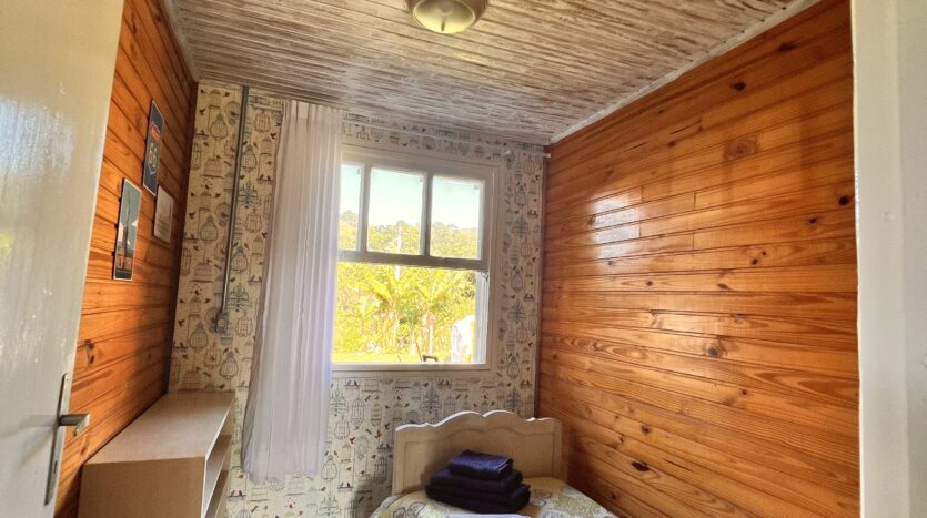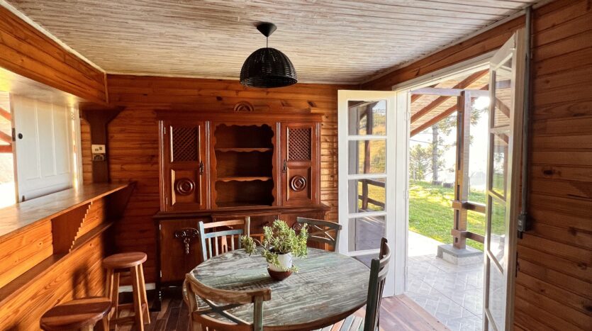 - CASA DE MADEIRA composta por 3 dormitórios, sala com lareira, wc social, cozinha, varanda, wc externo;