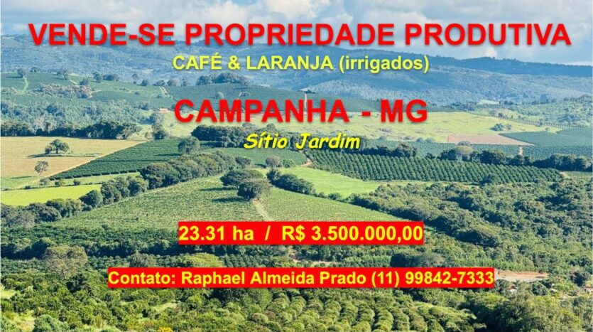 Sítio à venda em Campanha/MG, com estrutura completa de lavoura de café e laranja, com as seguintes benfeitorias:
