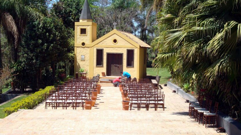 - Capela com pátio frontal.